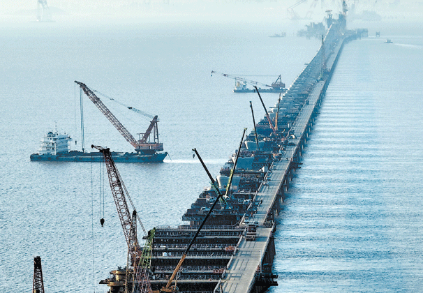 杭州湾跨海铁路大桥建设正酣