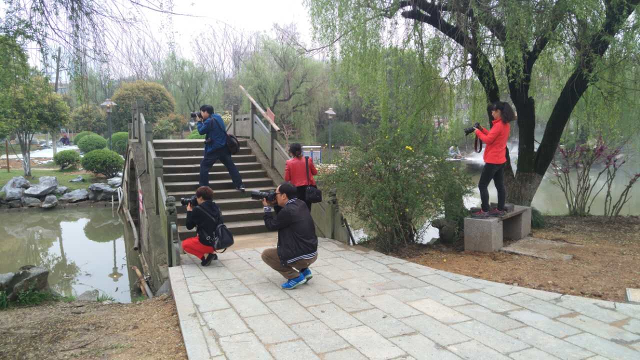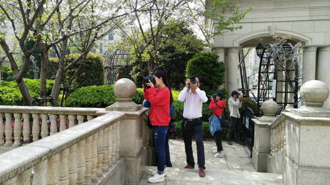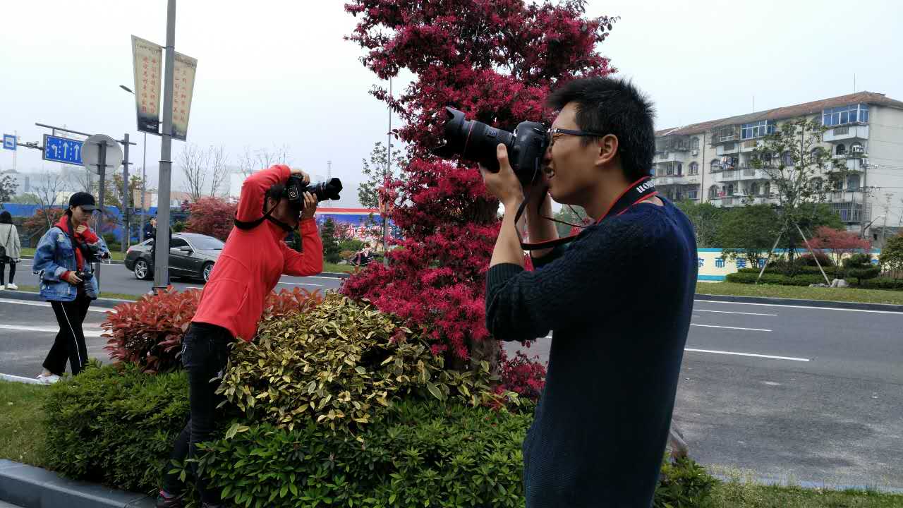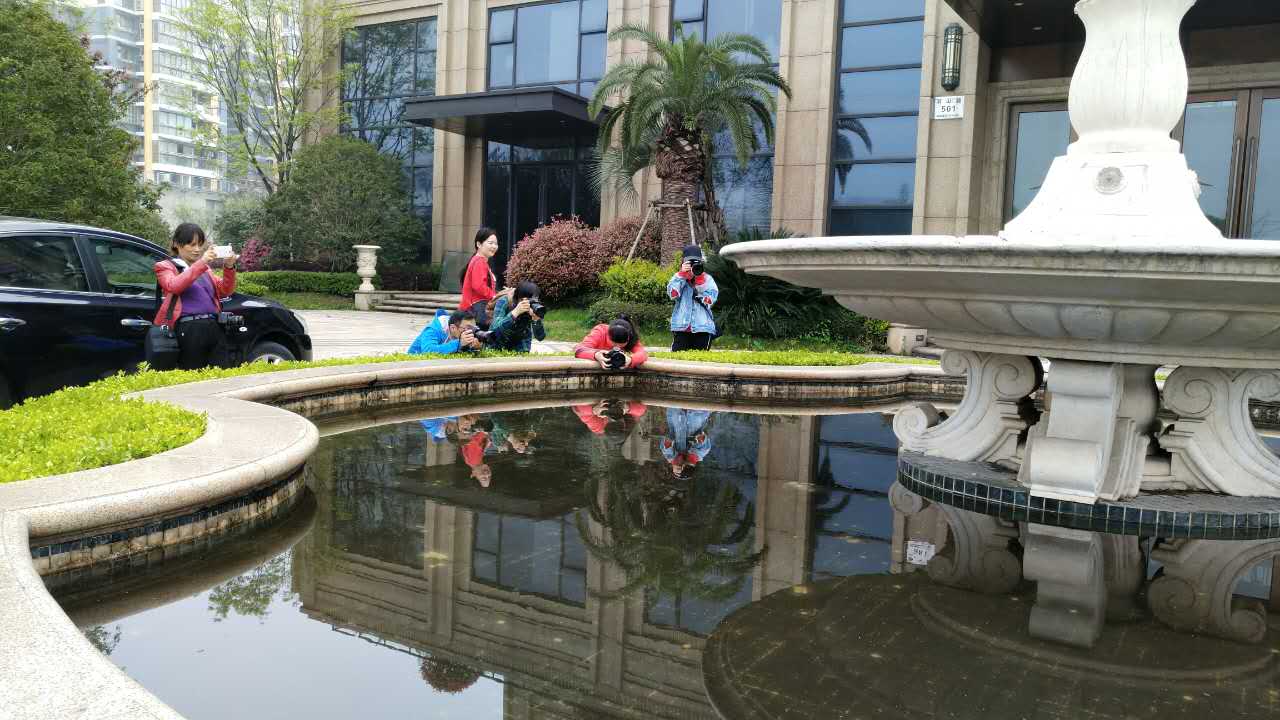 路旁的一草一木,景观带的绿化小品,边上小区门口的水池,都成了摄友们创作的源头。