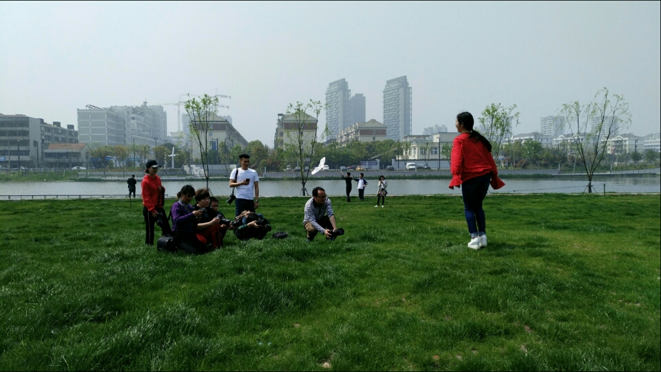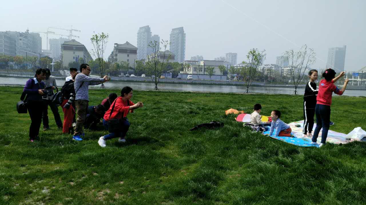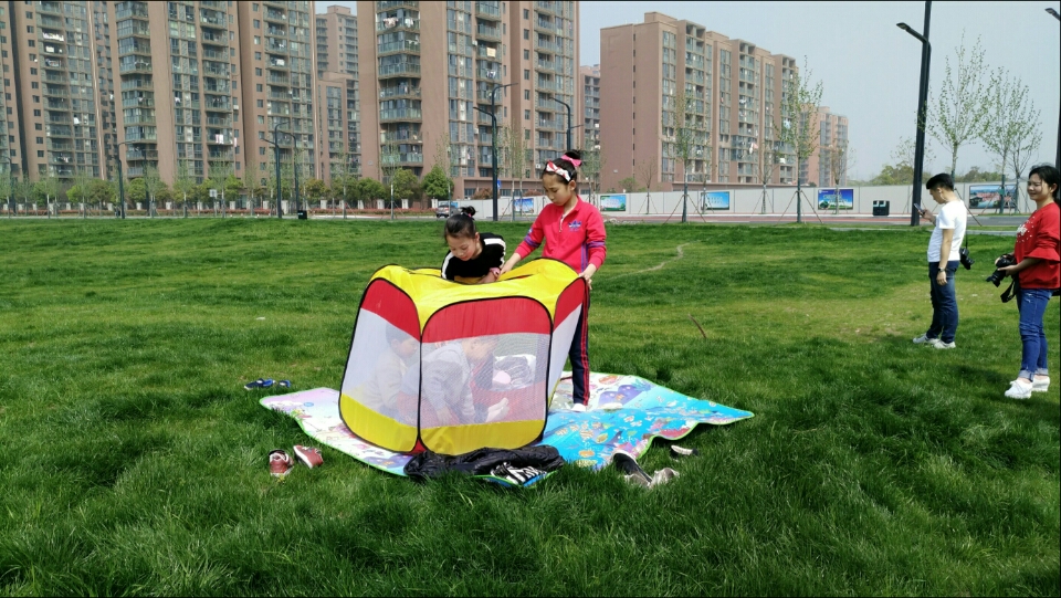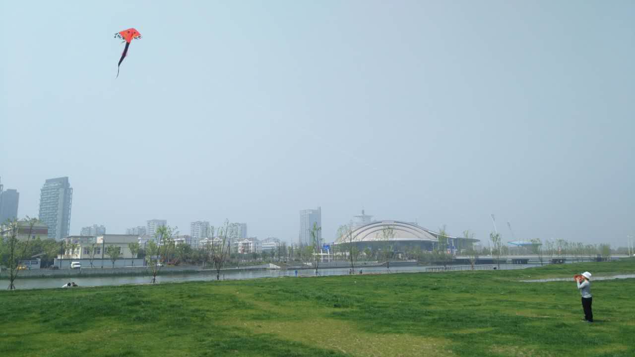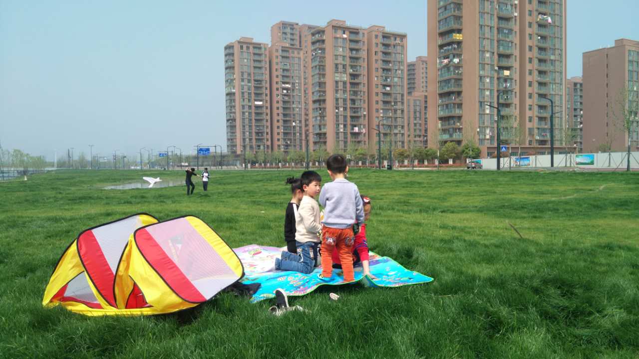 午后的新城河是孩子们的乐园,放风筝,搭帐篷,踢足球,到处是可爱的身影。