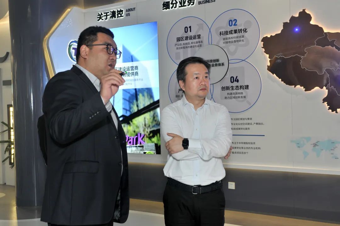 章程一行首先来到清控科创(宁波)创新基地。作为省“4+1”重大项目之一,该基地于今年7月全部投运,已完成投资超12亿元。章程观展板、看沙盘、听介绍,详细了解基地的建设情况。他对清控科创的专业运营能力及创新发展模式给予赞赏,希望他们能够发挥科创服务载体功能作用,促进项目孵化、转化、产业化发展,为慈溪高质量发展贡献力量。随后,章程还实地踏勘了环创中心地标酒店、创意水街等重点招商项目点位。