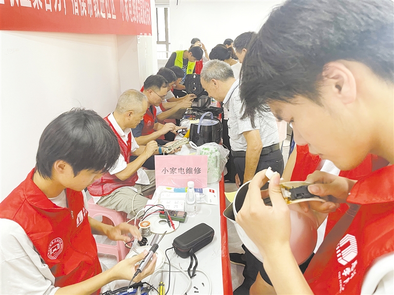 为打通便民服务的“最后一公里”,近日,白沙路街道滨河社区联合浙江工商职业技术学院慈溪学院与钱海军工作室开展“党建联盟聚合力,‘家电义诊’进社区”合作项目,以导师结合志愿者的形式,为小区居民免费维修各类家电。