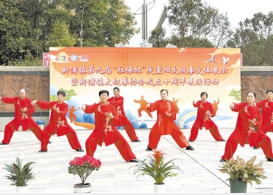 近日,新浦镇第九届“社保杯”太极拳展示暨镇太极拳协会成立十周年活动举行。长河、胜山、附海等镇太极团队同台,超150人参演,现场气氛热烈,为金秋重阳增添一抹亮丽文体色彩。