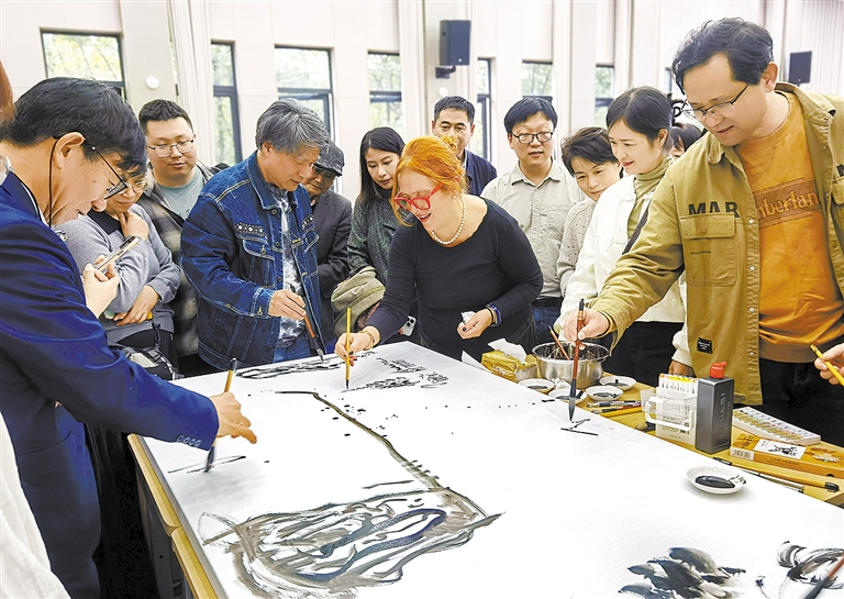 11月8日,市美协在慈溪画院举办了“墨·线之诗”中意新美术创新艺术交流会,邀请意大利马切拉特美术学院教授、著名艺术家特蕾莎·马拉斯卡讲授交流。特蕾莎教授展示了作品创新与创造过程,并现场与慈溪艺术家进行了实践创作。