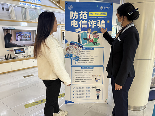 | 为深度筑牢全民反诈防线,浙江移动宁波慈溪分公司积极践行社会责任与企业担当,携手中国移动科学技术协会浙江分会,在各移动营业厅常态化开展反诈宣传活动,以实际行动提升群众防骗意识与自我保护能力,为遏制电信网络诈骗案件发生注入强劲动能。