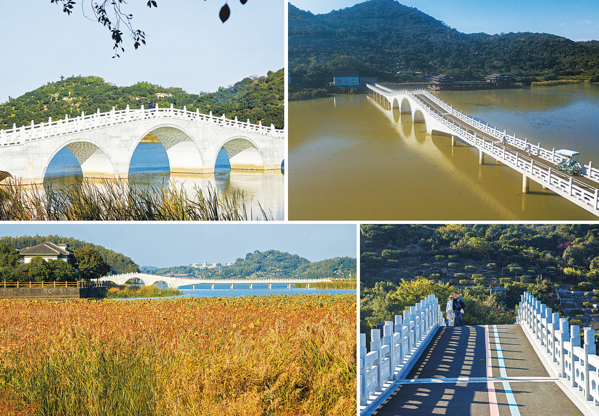 深秋的观海卫镇白洋湖,环湖步道的跨湖桥如一道凝固的彩虹,横卧在澄澈的湖光里。自亮相以来,这座“彩虹桥”便成了新晋打卡地,周末总见三三两两的游人倚栏拍照,笑声与快门声交织成湖边的晨昏乐章。