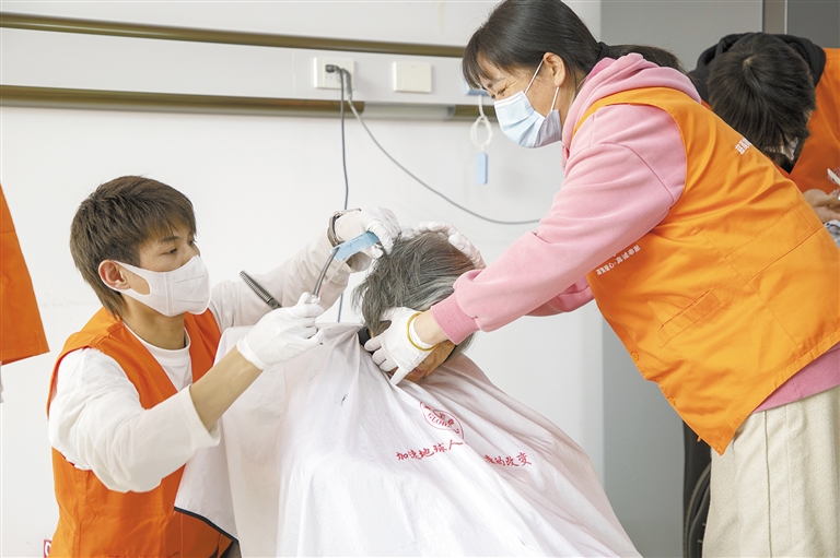 近日,市爱心壹加壹志愿者协会携手“地球村”爱心理发师与宁大科院志愿者,一同走进协爱早安养老院,以一场温馨的义剪活动,为这里的22位老人和古塘街道日间照料中心的12位残障学员送去暖心关怀。 摄影 全媒体记者 杨贯 通讯员 许蓝方