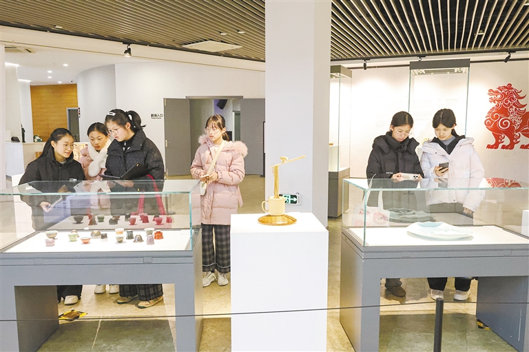 元旦当天,上林湖青瓷文化传承园“志道游艺”工艺美术作品展迎来众多市民观看。该展览由省民间文艺家协会、宁波市文联主办,展出了28位浙江民间工艺名家学员导师、助教的80余件陶瓷、木雕、刺绣、紫砂、瓯塑等八大类作品,集中展现了传统技艺的匠心传承与创新活力,为市民献上一场新年文化盛宴。摄影 全媒体记者 蒋亚军