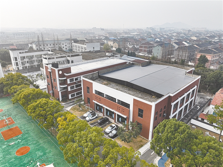 图为升级改造后焕然一新的横河中学实验楼和体育馆。摄影 全媒体记者 蒋亚军