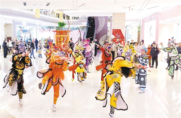 春节期间,慈溪环创爱琴海购物中心以“当红之年”为主题,打造一场跨越地域的非遗文化盛宴。活动现场,英歌舞、傩戏、游神等表演精彩纷呈,生动地再现了传统民俗,让市民近距离感受非遗的独特魅力。 摄影 全媒体记者 王烨江 通讯员 胡婷婷
