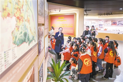 3月1日,慈溪市实验小学的学生们走进市城展馆,跟随讲解员的脚步,于一件件展品、一幅幅画面间,沉浸式探寻故乡的历史文化,真切感受城市日新月异的发展变迁。摄影 全媒体记者 王烨江 通讯员 姚科斌