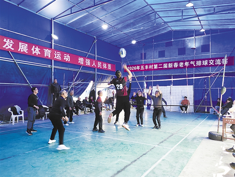 日前,桥头镇五丰村举办2026年第二届新春老年气排球交流赛,来自慈溪、余姚两地的18支球队、近200名老年运动员同台竞技、切磋球技,尽显健康向上、乐享晚年的精神风貌。摄影 全媒体记者 戎志虎 通讯员 陈国良