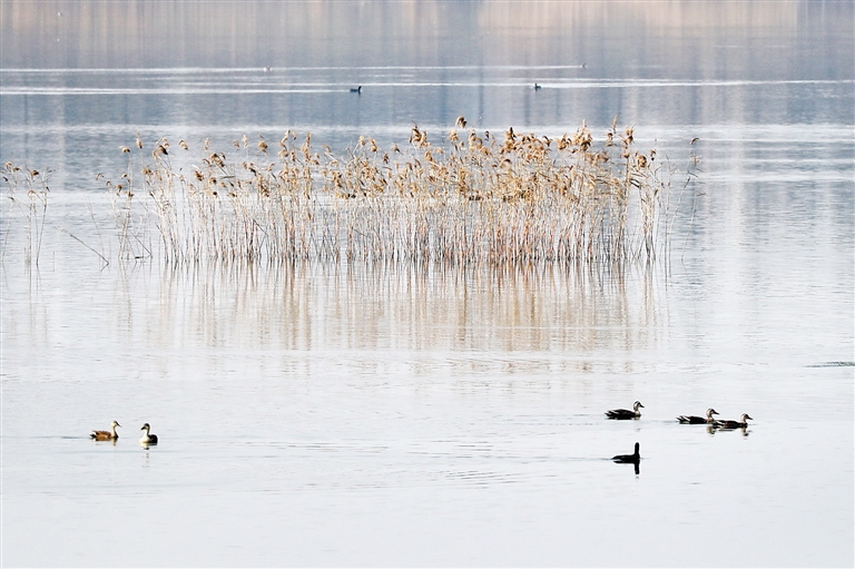 近日,随着气温逐渐回升,我市鸣鹤白洋湖迎来了别样的春日景象。湖面上,一群水禽悠然自得地游弋着,它们时而潜入水中觅食,时而相互嬉戏,成为了一道灵动的风景线。 -摄影 通讯员 余方