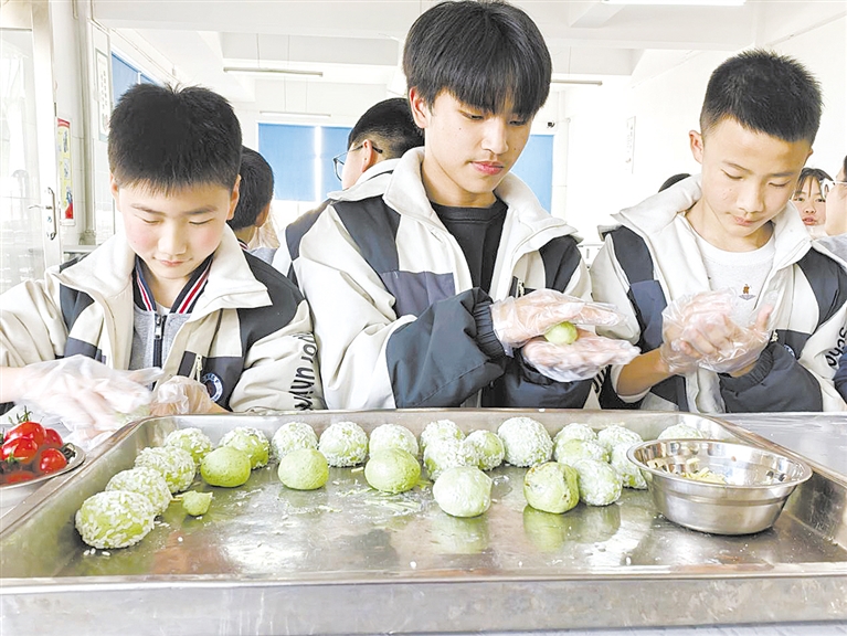 日前,耕民初级中学开展艾青团制作劳动实践活动。学生们在老师的指导下揉搓艾草面团、包馅料,亲手制作传统美食,在动手体验中感受清明习俗。 -摄影 全媒体记者 王桑 通讯员 杨敏