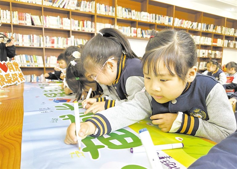 为关爱农村未成年人健康成长,引导青少年绿色阅读、文明上网、远离有害出版物和不良信息,龙山镇邱王村在文化礼堂雁门书屋开展了一场以“护苗成长,绿色阅读”为主题的护苗绿书签活动。活动现场,龙山镇农垦场幼儿园小朋友仔细聆听护苗绿书签知识讲解,认真阅读课外读物,集体在“护苗成长,绿色阅读”横幅上签名,争做一名绿色小卫士。 摄影全媒体记者 戎志虎 通讯员 陈璐伊
