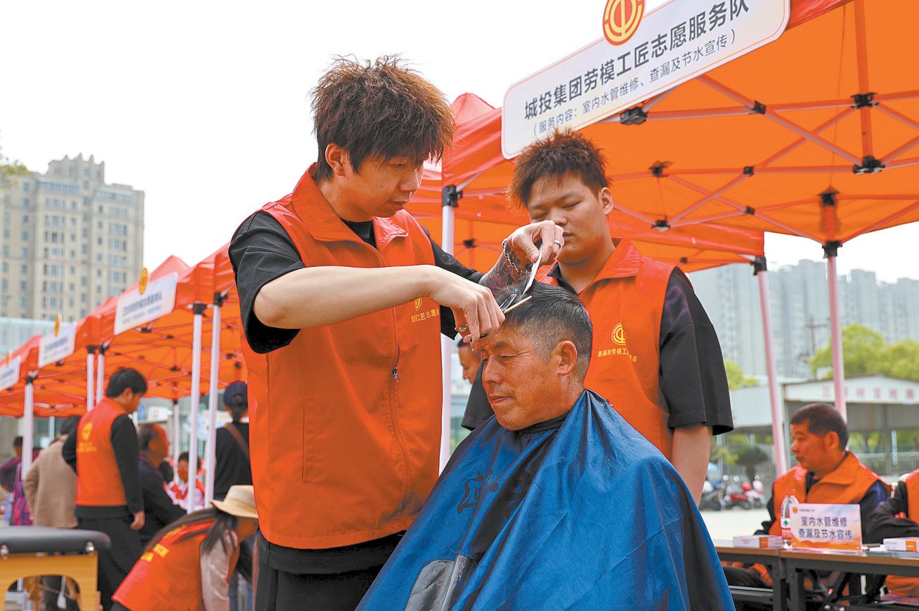 近日,由市总工会、市劳模联谊会主办的“礼赞劳动美致敬劳动者”——庆“五一”关爱百名户外劳动者慰问活动暨劳模志愿服务活动,在坎墩街道三群村工会驿站广场举行。现场,市、街道两级劳模志愿服务队为劳动者们提供义诊、理发、应急救护培训等服务,并送上慰问品与节日祝福。