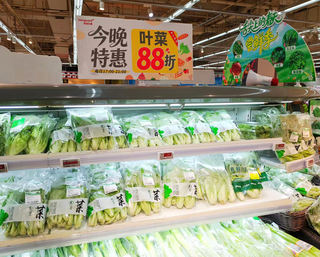 下午5点,超市氛围悄然转变。生鲜区的“晚市精选”海报亮相,尤其在叶菜、烘焙、熟食、面点、果切五个区域,醒目的“晚市专享88折”标签吸引了众多下班的顾客。正在挑选打折面包的上班族小陈说:“晚饭后当点心,或者明早当早餐,正好打折,很合适。”在熟食区,张先生为家人挑选了几样折扣菜品:“下班懒得做复杂的,买点打折熟食,再加个青菜,晚餐轻松解决。”